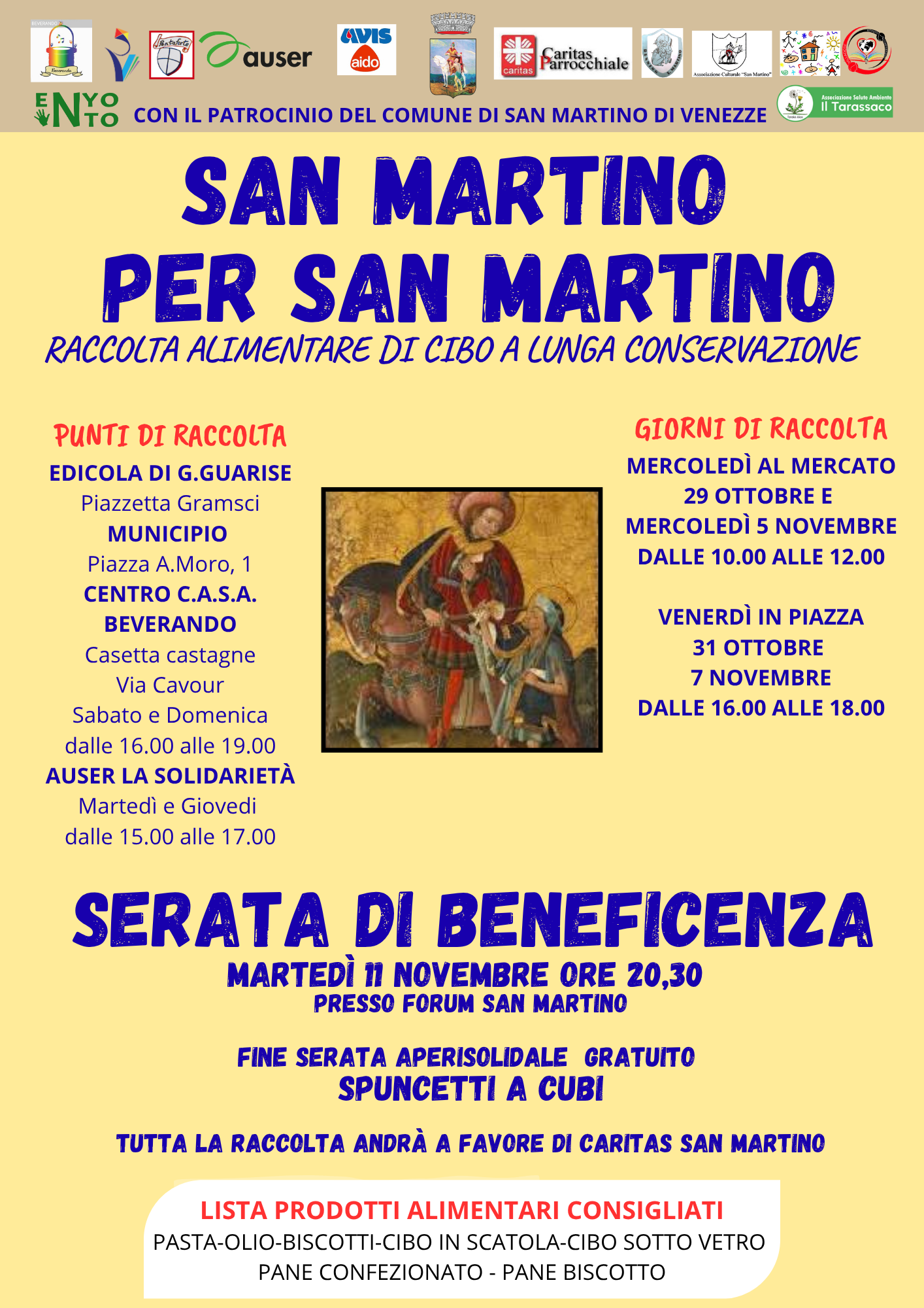 La raccolta si concluderà con una SERATA DI BENEFICENZA martedì 11 novembre ore 20,30 presso FORUM SAN MARTINO. Fine serata Aperisolidale gratuito (spuncetti a cubi)